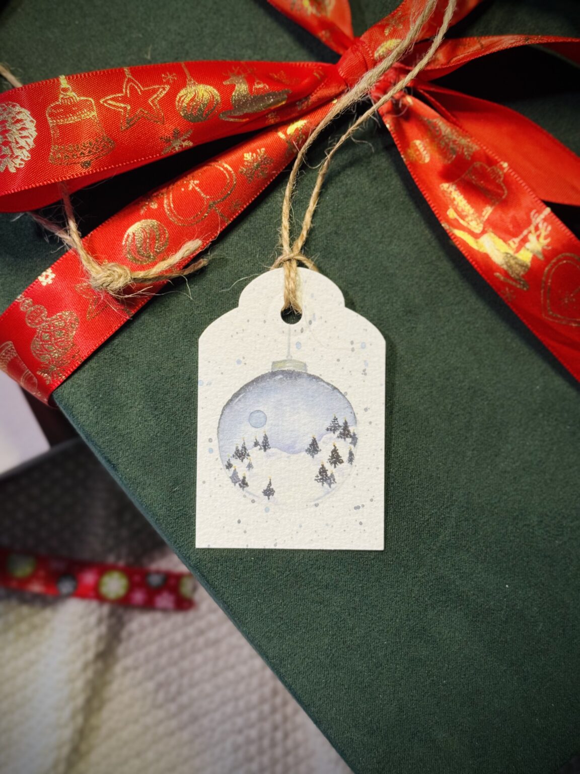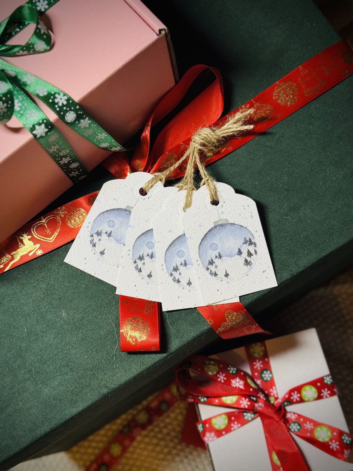Etykietka prezentowa „Śnieżna bombka” dodaje prezentom odrobinę świątecznej magii i elegancji. Ilustracja bombki przypominającej maleńką śnieżną kulę z zimowym pejzażem wewnątrz tworzy wyjątkowy, nastrojowy efekt. Dzięki sznureczkowi i delikatnej formie etykietka idealnie nadaje się do podpisania prezentów, czyniąc je jeszcze bardziej osobistymi i dopracowanymi. To subtelny detal, który pięknie dopełni każdą paczkę pod choinką.