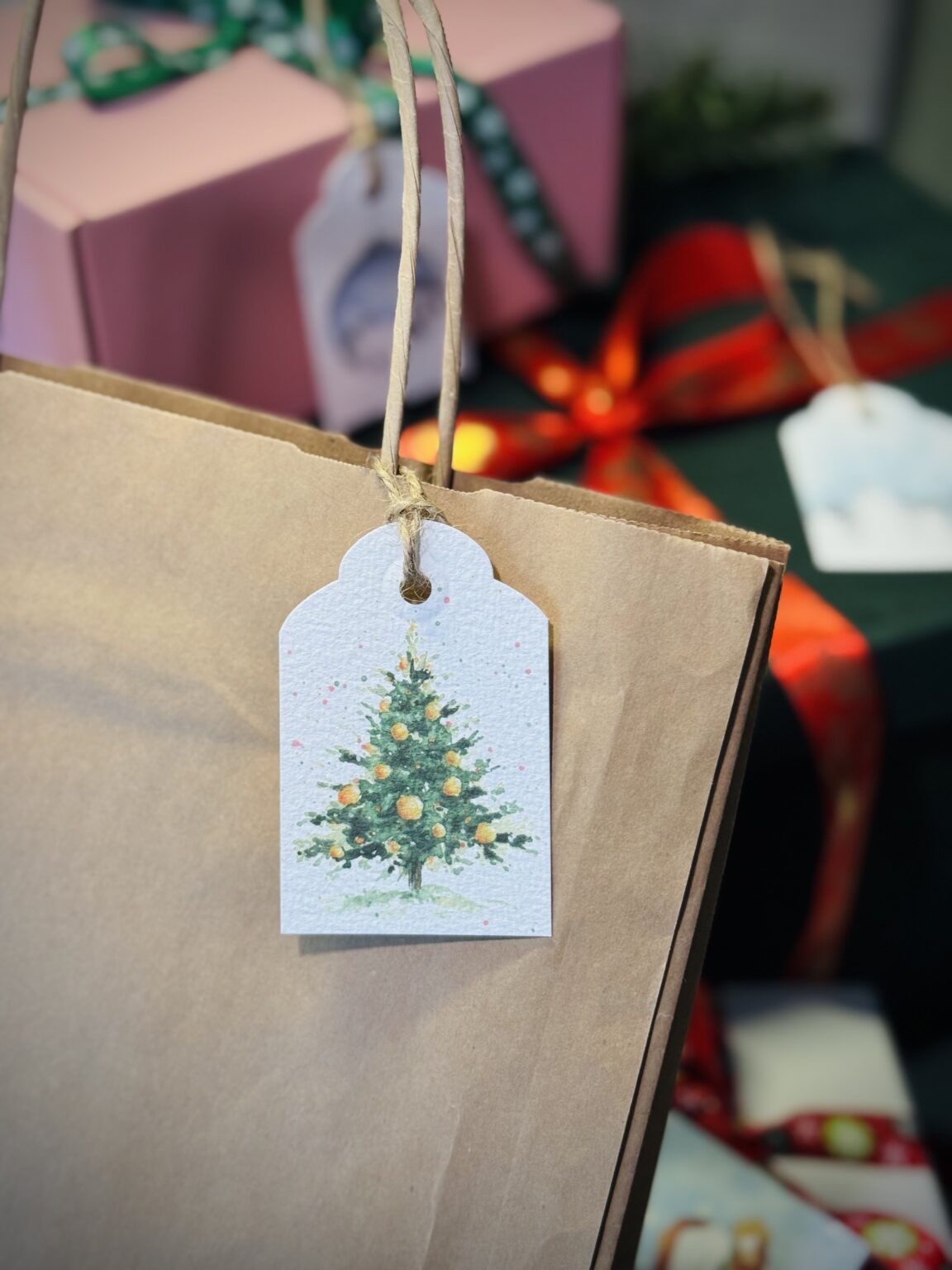 Zestaw etykietek prezentowych średni to idealny sposób, by każdy świąteczny upominek zyskał wyjątkowy charakter. W komplecie znajdują się cztery różne wzory — od choinek, przez bałwanka, po śnieżną bombkę — dzięki czemu możesz dopasować bilecik do stylu prezentu lub osoby, którą obdarowujesz. Każda etykietka posiada sznureczek, który ułatwia jej przywiązanie, i piękną ilustrację, która dodaje paczce uroku, elegancji i świątecznego klimatu.