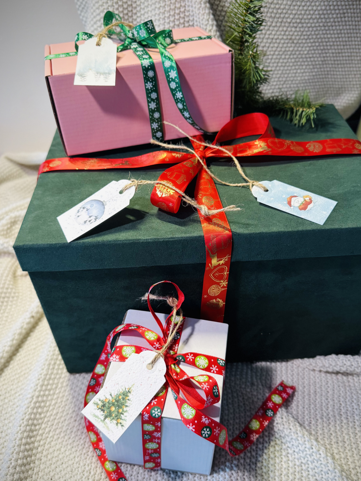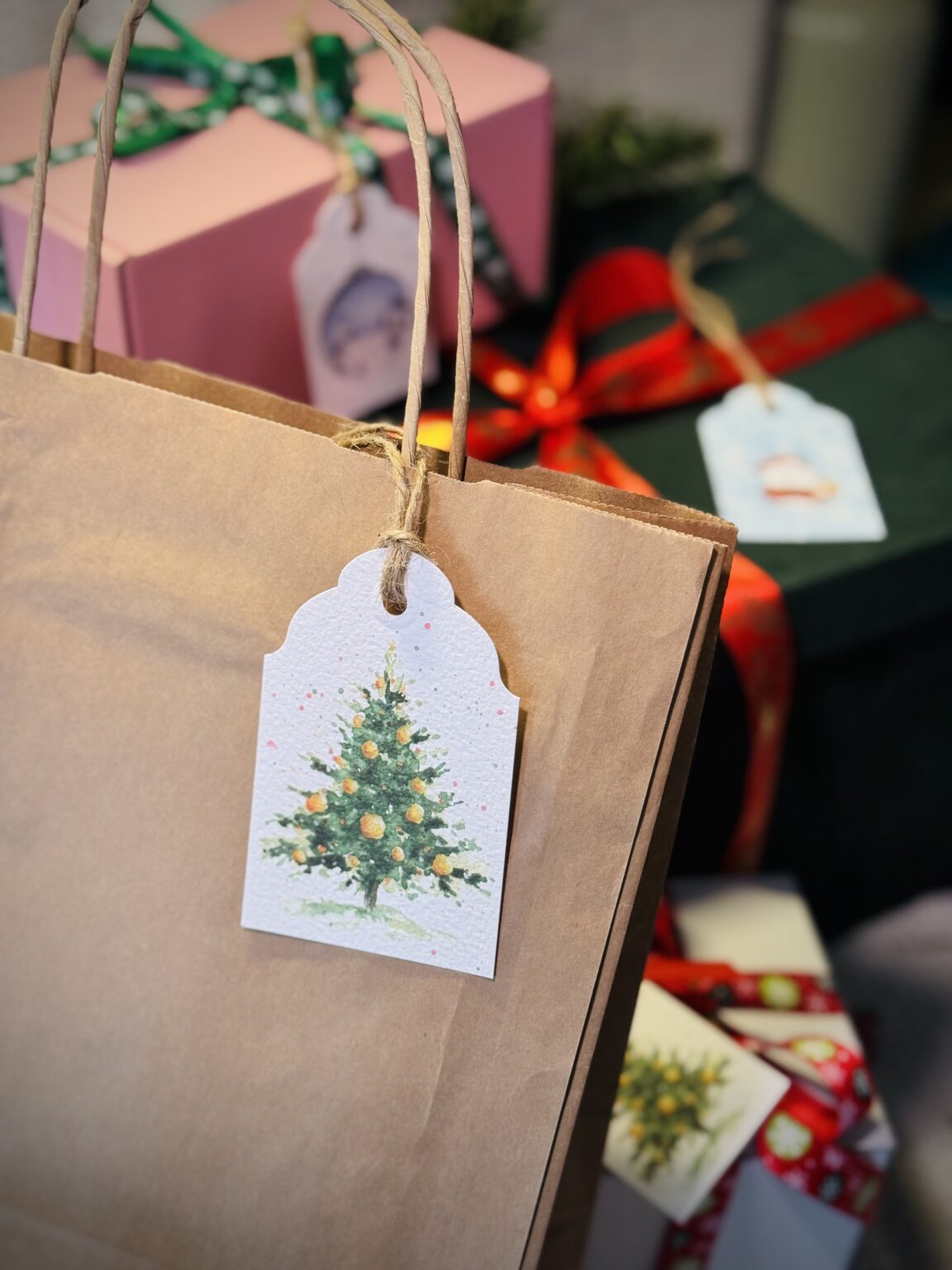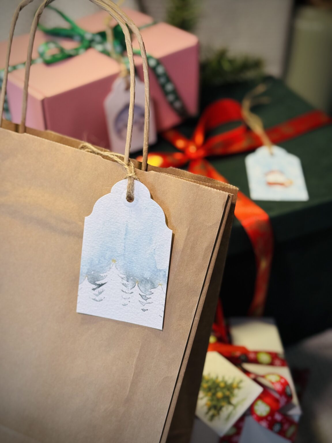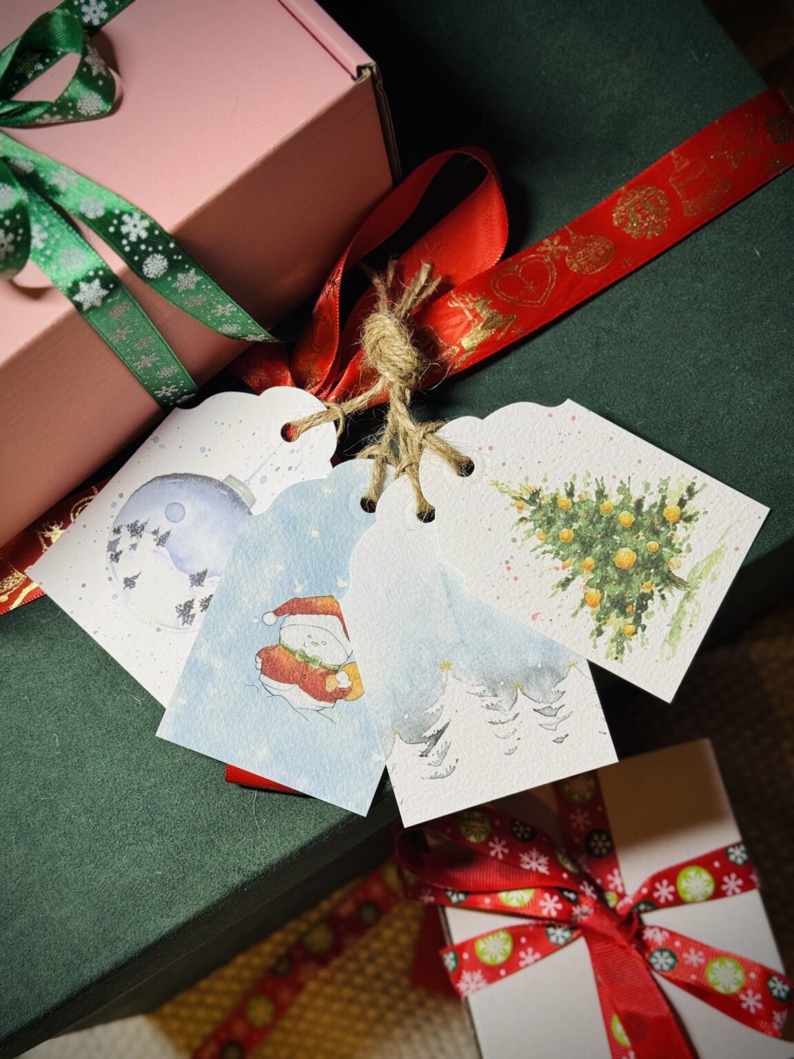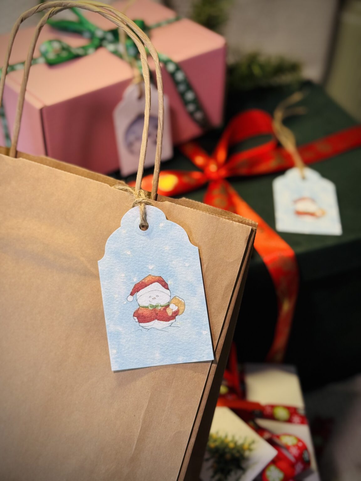 Zestaw etykietek prezentowych dużych to idealny sposób, by każdy świąteczny upominek zyskał wyjątkowy charakter. W komplecie znajdują się cztery różne wzory — od choinek, przez bałwanka, po śnieżną bombkę — dzięki czemu możesz dopasować bilecik do stylu prezentu lub osoby, którą obdarowujesz. Każda etykietka posiada sznureczek, który ułatwia jej przywiązanie, i piękną ilustrację, która dodaje paczce uroku, elegancji i świątecznego klimatu.