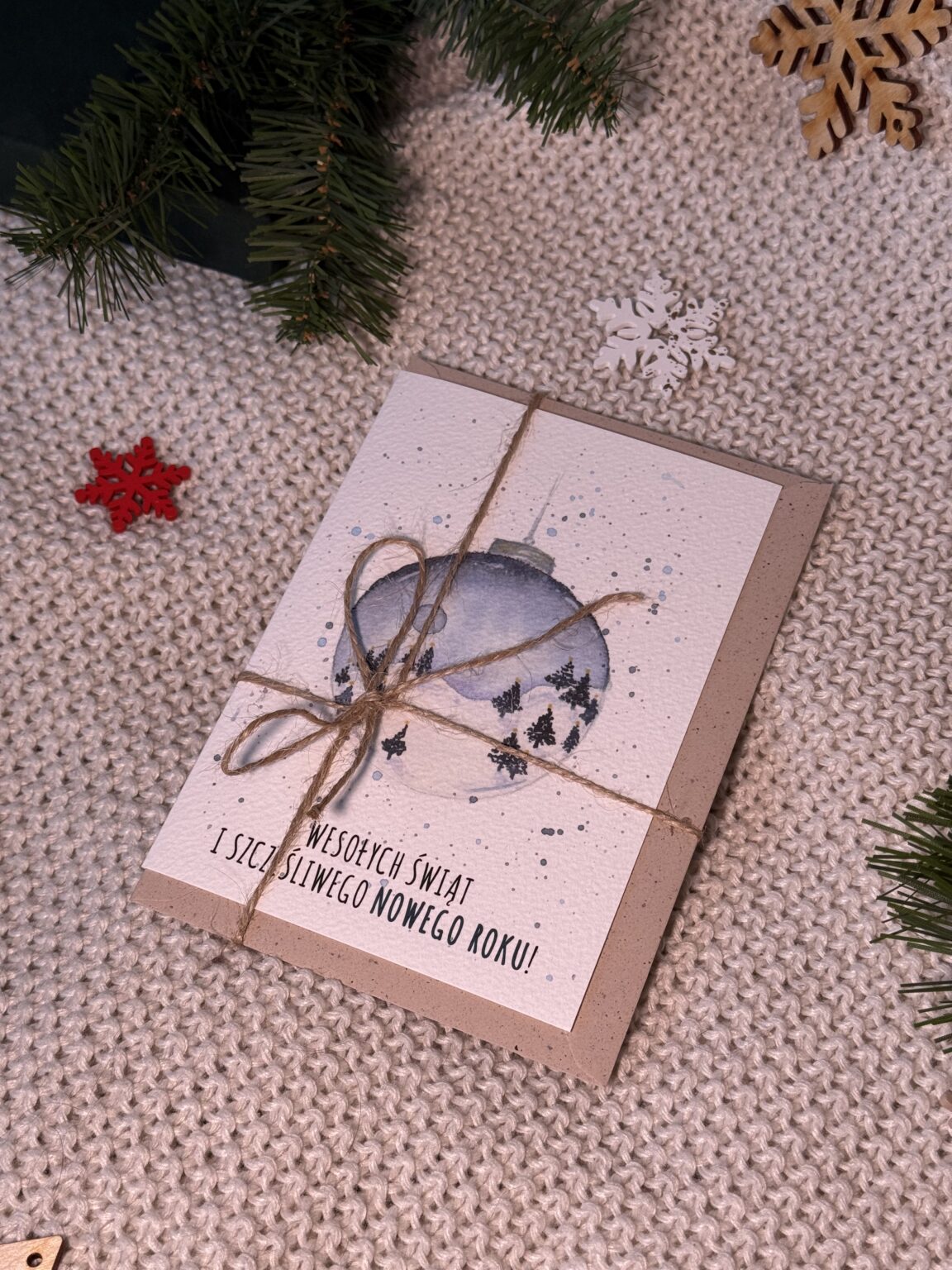 Kartka świąteczna „Śnieżna bombka” przenosi prosto do zimowej baśni — w środku szklanej bombki kryje się maleńki, śnieżny krajobraz, jak uchwycony w bezczasowej chwili magii. Padający śnieg, zimowe detale i delikatny blask sprawiają, że kartka wygląda jak miniaturowa świąteczna ozdoba, którą można przesłać bliskim. To pełna uroku, klimatyczna kartka z życzeniami „Wesołych Świąt i Szczęśliwego Nowego Roku”, idealna dla miłośników zimy, światełek i nastrojowych dekoracji.