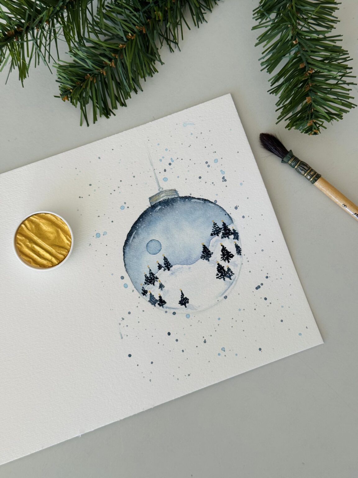 Śnieżna bombka – kartka oryginalna – malowana